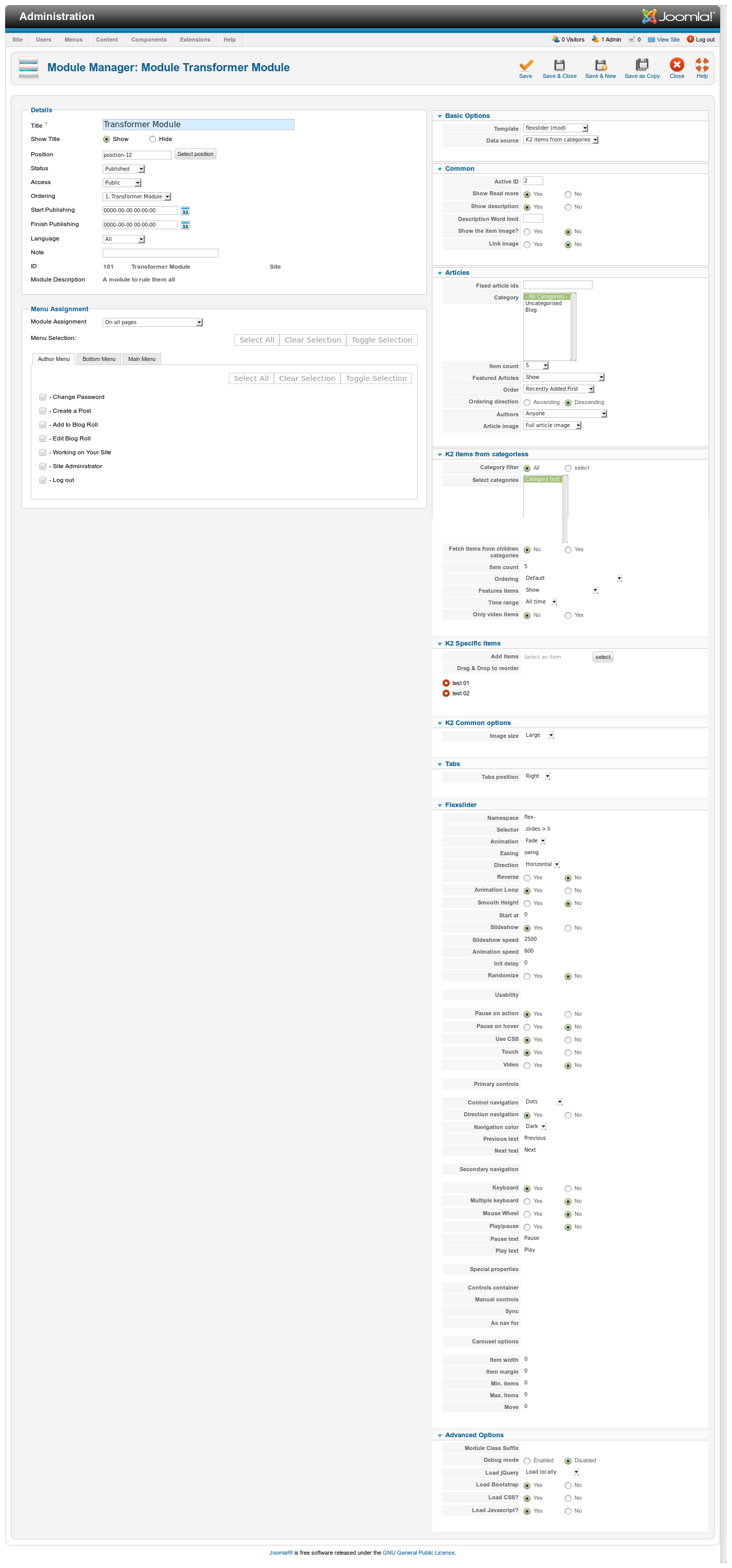 Transformer es un módulo para Joomla! que muestra contenido nativo de Joomla! o de K2 de múltiples formas usando plantillas. Crea un slider, un sistema de navegación por pestañas o un grupo de artículos desplegables. Y pronto muchas plantillas más!
